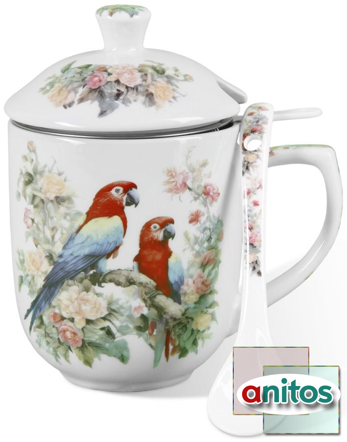 P260048 Кружка с заварником, 350мл. Выполнена из фарфора с ситечком из пищевой нержавеющей стали. Кружка с заварником - удобная возможность заварить ароматный чай на одну персону.