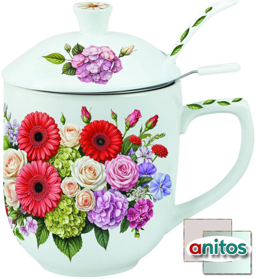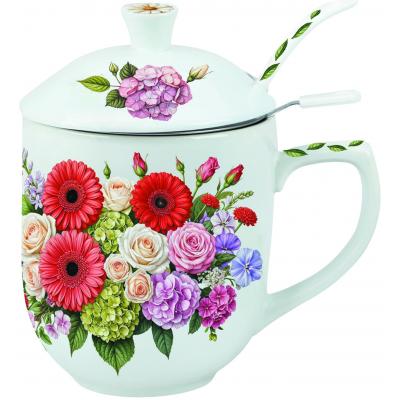 P260052 Кружка с заварником, 350мл. Выполнена из фарфора с ситечком из пищевой нержавеющей стали. Кружка с заварником - удобная возможность заварить ароматный чай на одну персону.