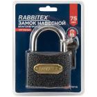 Замок навесной чугунный "Влагонепроницаемый", ширина 75 мм, полимерное покрытие, английский, 3 ключа, rabbitex (РАББИТЕКС), 671299