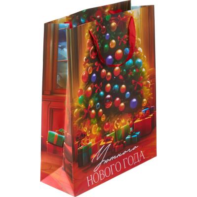 Пакет подарочный вертикальный 'Уютный НГ', елка, L 31x40x11,5см 10348937 НГ