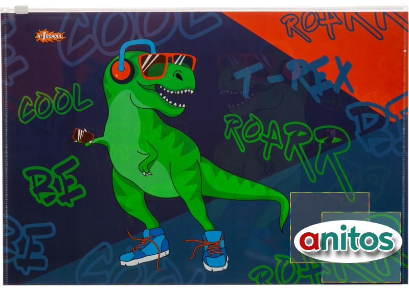Папка-конверт на молнии zip А4+ №1 School Динозавр