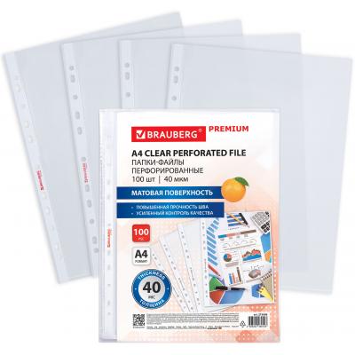 Папки-файлы перфорированные А4 BRAUBERG "PREMIUM", КОМПЛЕКТ 100 шт., матовые, 40 мкм, 273008