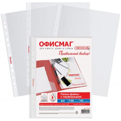 Папки-файлы перфорированные А4 ОФИСМАГ "Стандарт", КОМПЛЕКТ 100 шт., гладкие, 45 мкм, 273010