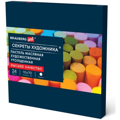Пастель масляная BRAUBERG ART "Секреты художника", УТОЛЩЕННАЯ, 24 цвета, круглое сечение, 182100