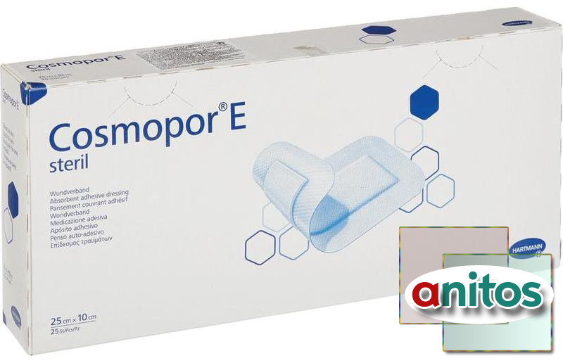 COSMOPOR E/Космопор Е - Самоклеящиеся послеоперац. повязки: 25 х 10 см; 25 шт. Для ухода за послеоперационными ранами, а также для стерильного ухода при незначительных повреждениях кожи Самоклеящаяся повязка на рану из мягкого нетканого материала со специальной не приклеивающейся к ране впитывающей подушечкой; хорошая сорбционная способность и защитные свойства; благоприятна для кожи за счёт гипоаллергенных свойств синтетического каучукового клея. Стерильно, запечатано поштучно