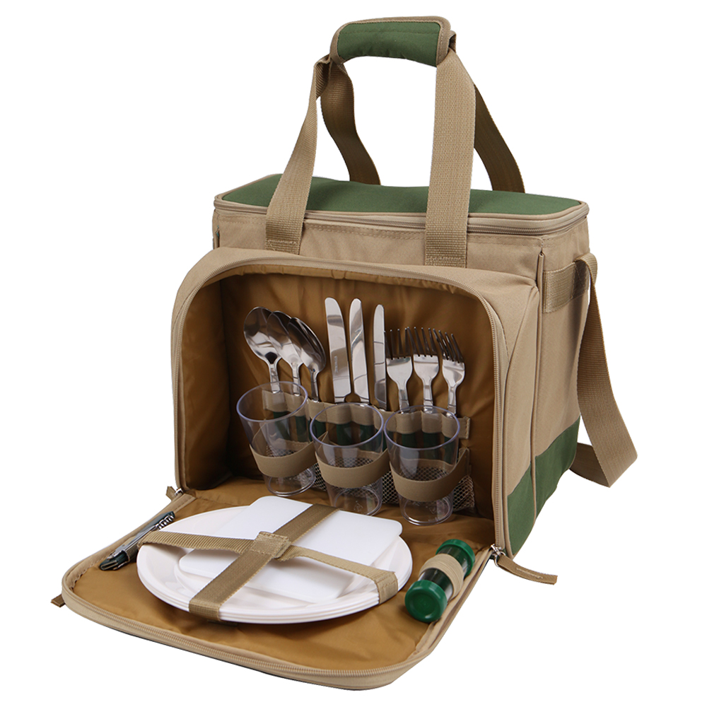 Сумка-холодильник с набором посуды (3 чел). Сумка-холодильник (13,5 л) 1 шт, стакан 3 шт, вилка 3 шт, ложка 3 шт, нож 3 шт, тарелка 3 шт, солонка-перечница 1 шт, штопор 1 шт, разделочная доска 1 шт. Внешний материал: оксфорд. Внутренний материал: экологичный водонепроницаемый материал PEVA