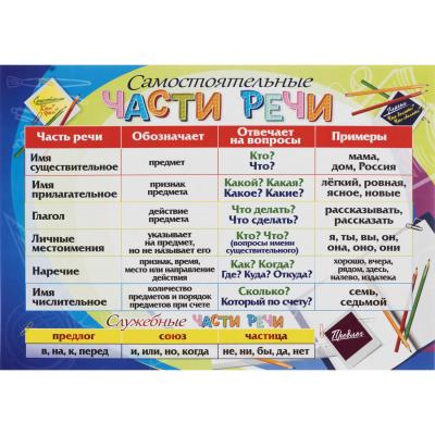 Плакаты помогут детям освоить важнейшие темы, такие как «Части речи», «Падежи» и «Буквы и звуки русского языка». Эти материалы помогут школьникам правильно произносить и писать буквы, а также делать разбор слов по составу. Плакат «Части речи» развивает навыки грамотного письма, а «Падежи» помогут провести синтаксический и морфемный разборы.