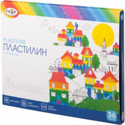 Пластилин Гамма КЛАССИЧЕСКИЙ 36 цв, со стеком, к/к 720г, 281037