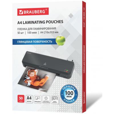 Пленки-заготовки для ламинирования А4, КОМПЛЕКТ 50 шт., 100 мкм, BRAUBERG, 533114