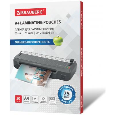 Пленки-заготовки для ламинирования А4, КОМПЛЕКТ 50 шт., 75 мкм, brauberg, 533112
