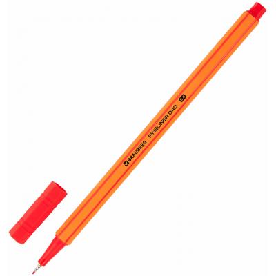 Ручка капиллярная (линер) КРАСНАЯ, BRAUBERG "FINE 040", шестигранная, линия письма 0,4 мм, 144142