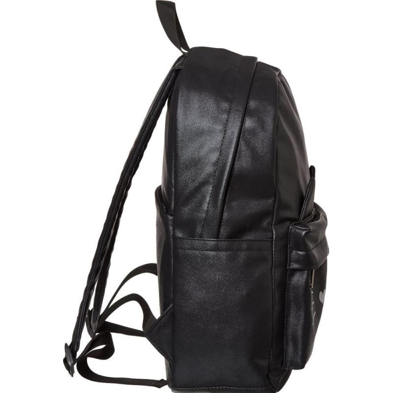 Рюкзак из блестящей экокожи. Одно основное отделение на молнии. На лицевой стороне имеется накладной карман на молнии. Два боковых кармана на резинке. Внутри рюкзак отделан подкладочной тканью и имеет открытый внутренний карман. Мягкая уплотненная спинка, уплотненные задние лямки. Сверху ручка-петелька для ношения в руке. Особенности: материал рюкзака — блестящая экокожа. Размеры (ДхШхВ): 160300430 мм. Вес изделия: 850 г. Без светоотражающих элементов.