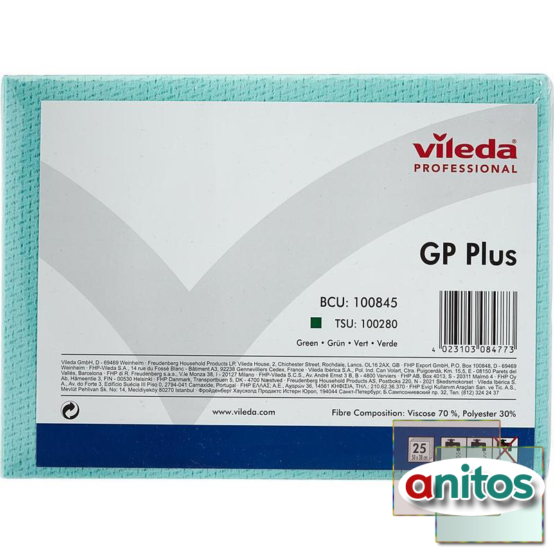 Салфетка большого размера ДжиПи Плюс от Vileda Professional предназначена для профессиональной уборки и протирки поверхностей. Подходит для однодневного использования.