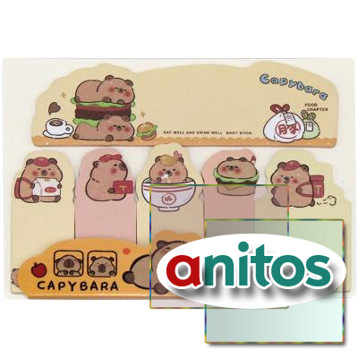 Закладки клейкие бумажные "Капибара" с печатью (6 видов х 15 листов), ассорти, 81278
