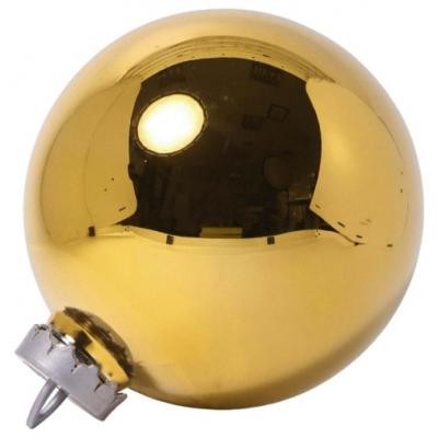 Новогодний шар большого размера изготовлен из прочного пластика с золотистым покрытием, размер изделия — 2020 см, диаметр — 20 см, подходит для украшения высоких ёлок. Лёгкий и ударопрочный, шар сохраняет привлекательный вид благодаря качественному покрытию. Приятный золотистый цвет гармонично дополняет любой ёлочный декор и создаёт яркие праздничные акценты. Шар крепится через дуговое ушко.