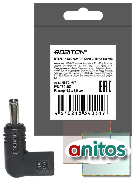 Штекер robiton nbtc-mff 4,5 x 3,0мм pk1