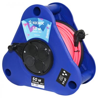 Силовой удлинитель КОСМОС yktksm50m-4g(2.5)ip 50м (на катушке б/зем) 4 розетки (ПВС 2х2,5) ip44