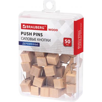 Силовые кнопки-гвоздики BRAUBERG WOOD, деревянные (кубики), 50 штук, 10 мм, 272762