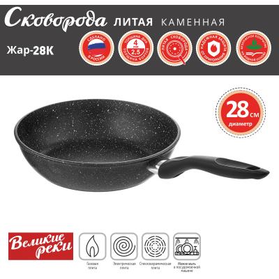 Сковорода Великие Реки Жар-28К литая классическая каменная черная 28 см