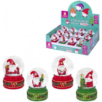 Снежный шар "Гномики" диаметр 45 мм, полистоун/стекло, 4 дизайна ассорти, ЗОЛОТАЯ СКАЗКА, 592597