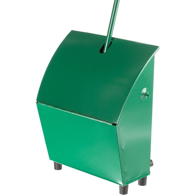 Совок- ловушка для мусора с крышкой ЭкоКоллекция металл окрашенный (ширина 27 см, ручка 80 см) изготовлен из металла, выполнен в зеленом цвете. Подходит для уборки больших площадей на улице и в помещениях. Оснащен крышкой, которая автоматически захлопывается при переноске, и удобной длинной ручкой. Вмещает бутылки и банки объемом 0,33 литра. На днище имеются ножки. Общая длина 91 см.