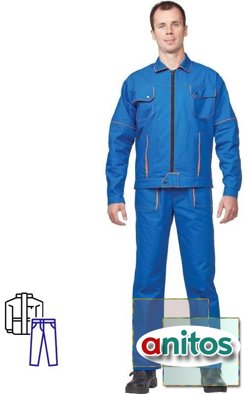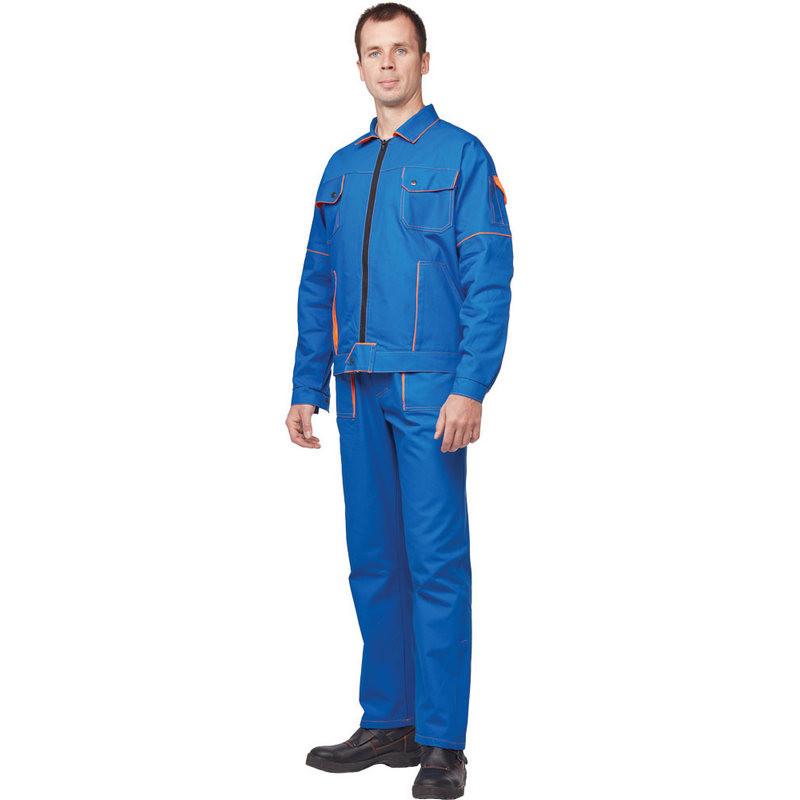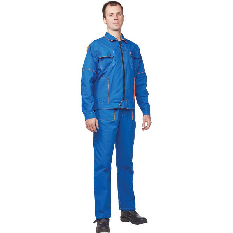 Спецодежда летняя костюм мужской л06-КБР (куртка брюки). Размер: 44–46. Рост: 182–188. Куртка прямого силуэта с застежкой на 'молнию'. На левом рукаве двухсекционный карман с клапаном Пояс куртки регулируется по ширинезастежками-хлястиками Брюки с застежкой гульфика на пуговицы, с накладными карманами Ткань: саржа (100%хлопок) Плотность ткани: 240 г/м2. Цвет: васильковый, отделка: оранжевый. Температурный режим стирки — не выше 40 градусов. Есть заключение Минпромторга России для получения компенсации от ФСС на охрану труда. Сферы применения: сельское хозяйство, логистика, легкая промышленность, строительство, озеленение, автомобильная. В коллекции л06 представлены комплекты: куртка с брюками л06-КБР и куртка с полукомбинезоном л06-КПК .