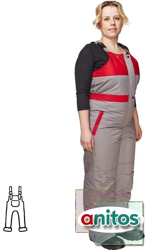 Полукомбинезон рабочий зимний женский з10-ПК серый/красный (размер 44-46, рост 170-176). Рекомендован для использования в логистике, легкой промышленности, строительстве.