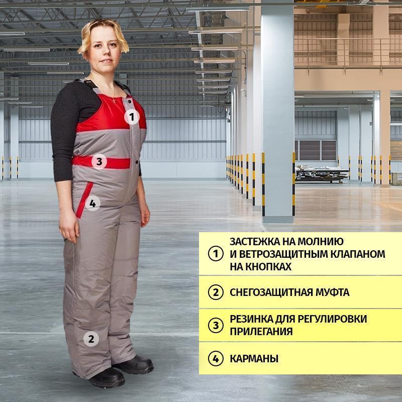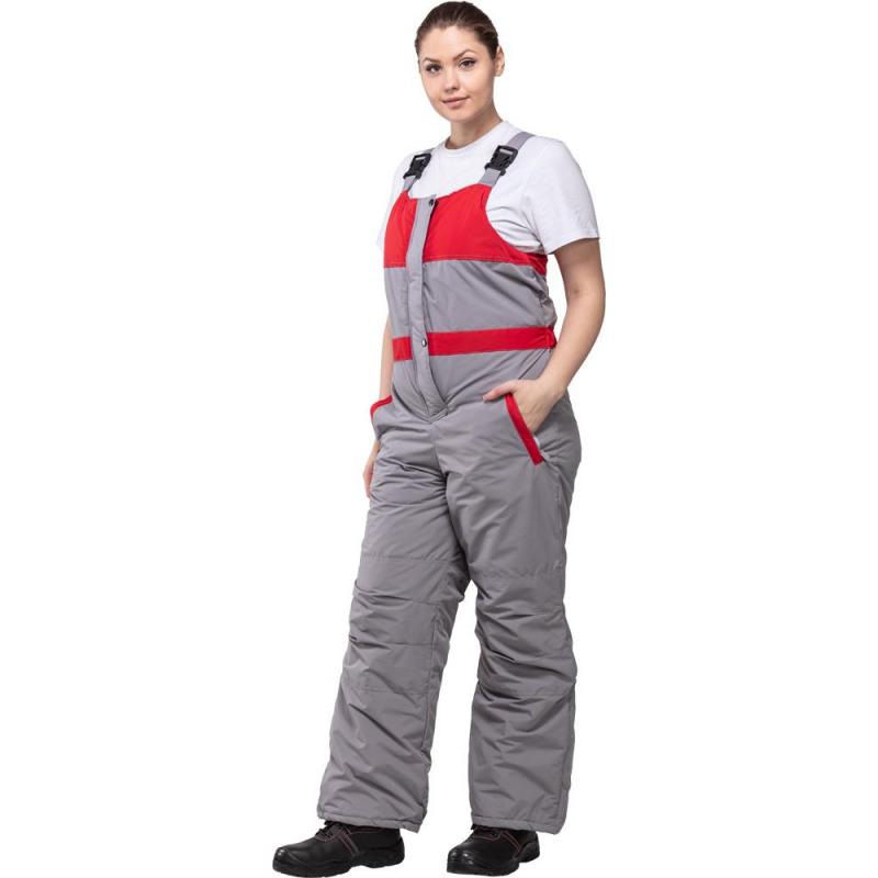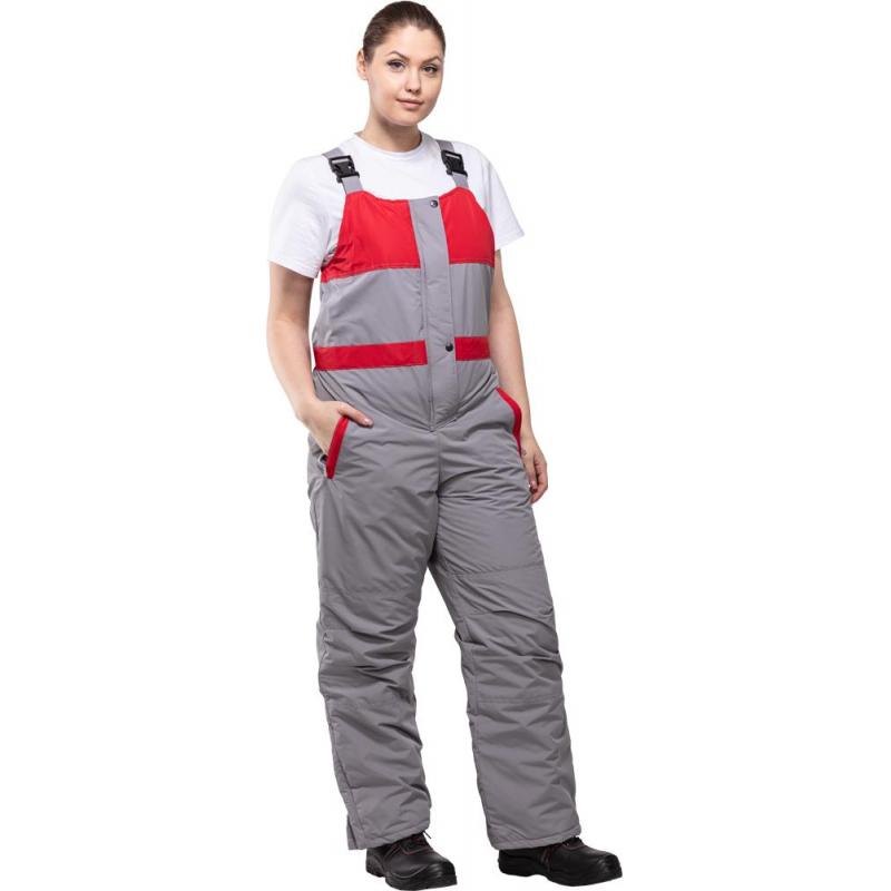 Полукомбинезон рабочий зимний женский з10-ПК серый/красный (размер 52-54, рост 158-164). Рекомендован для использования в логистике, легкой промышленности, строительстве.