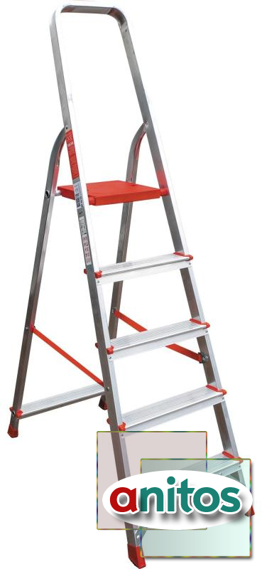 Стремянка 'Новая высота' 5 ступеней 3110105 разработана для долговременного профессионального применения. Преимущества: - Имеет антискользящие опорные наконечники из пластика, безопасную площадку и ступени глубиной 80 мм. - При хранении не занимает много места, а благодаря небольшому весу легко транспортируется. - Ступени и стойки изготовлены из прессованных алюминиевых профилей увеличенного сечения, площадка - из оцинкованной стали с порошковой покраской. Внешний вид и/или характеристики товара могут быть изменены производителем в соответствии с производственным процессом.