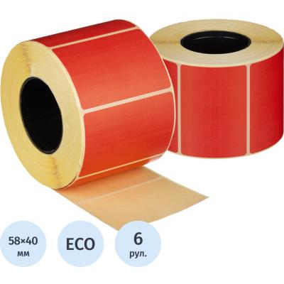 Термоэтикетки 5840 мм ЭКО диаметр втулки 40 мм (6 рулонов по 700 этикеток) изготовлены из сырья (материал Thermal ECO) российского производства. Этикетки красного цвета. Размер втулки — 40 мм. На нескольких этикетках в рулоне возможно наличие черных полос в связи со спецификой технологического процесса. Они компенсируются за счет увеличения намотки рулона.<br><br>Термоэтикетки предназначены для печати на термопринтерах в режиме прямой термопечати (Direct Termal, печать с помощью термоголовки).