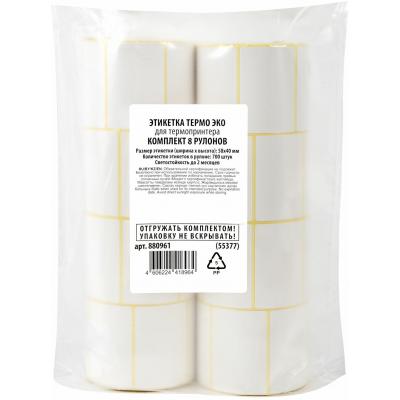 Термоэтикетки ЭКО, 58х40 мм, КОМПЛЕКТ 8 рулонов по 700 этикеток, 880961