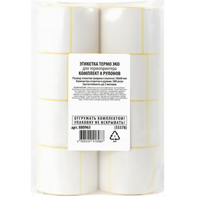 Термоэтикетки ЭКО, 58х60 мм, КОМПЛЕКТ 8 рулонов по 500 этикеток, 880963