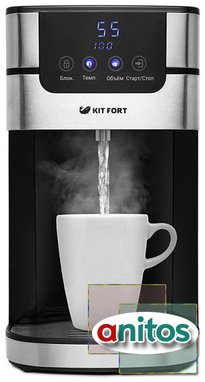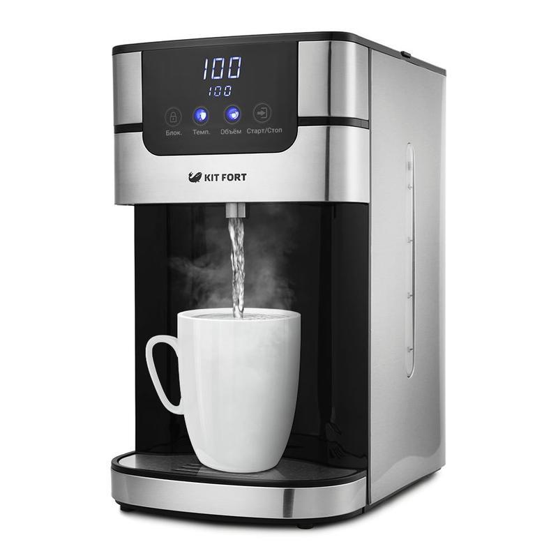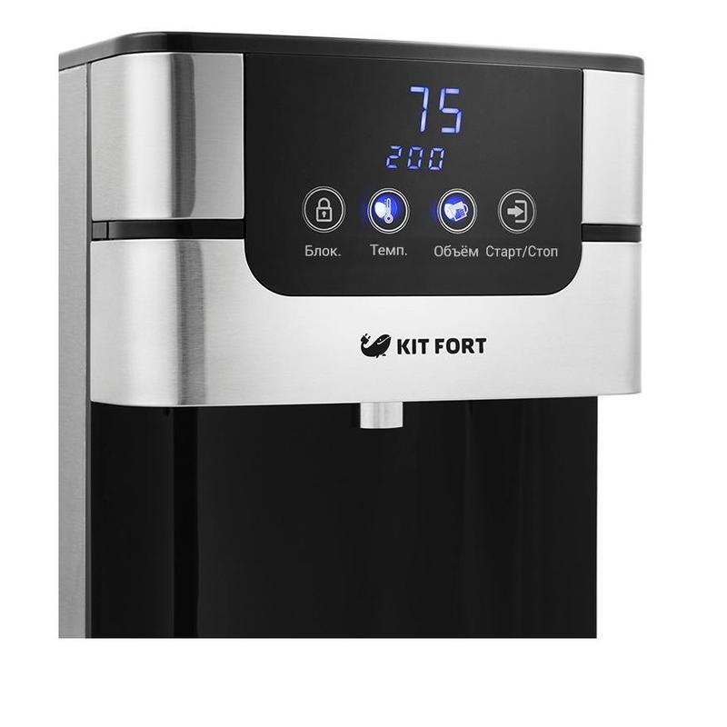 Термопот Kitfort KT-2501 служит для моментальной подачи воды заданной температуры без предварительного подогрева и ожидания. Термопот не потребляет электричество в режиме простоя. Подогрев осуществляется проточно, подача воды начинается в течение примерно 5 секунд после нажатия кнопки - столько времени занимает нагрев до температуры кипения. В отличие от чайников, термопот не нагревает лишний объём воды, в результате чего значительно экономится электроэнергия. Экономия по сравнению с обычными чайниками до 50%. Управление у прибора сенсорное, а так же имеется блокировка, чтобы предотвратить случайное включение.