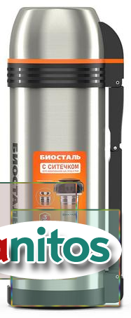 Термос универсальный с ручкой, biostal, 1,8л, титан