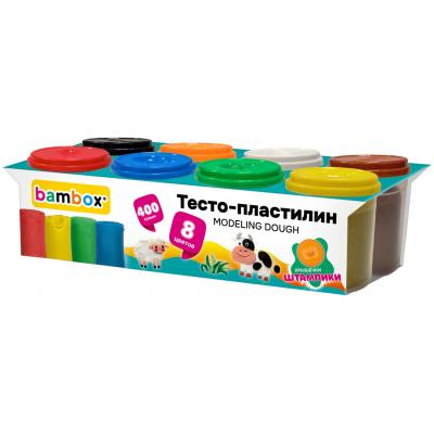 Тесто-пластилин для лепки СУПЕР ПЛАСТИЧНОЕ, 8 цветов, 400 г, крышки-штампики, bambox (БАМБОКС), 107248