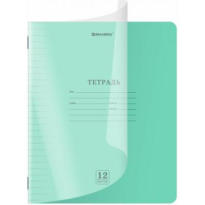Тетрадь обложка пластик (прозрачный) 12 л., линия, BRAUBERG "Smart Cover", ЗЕЛЕНАЯ, 405020