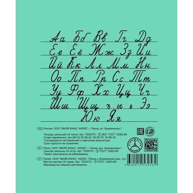 Тетрадь школьная зеленая Маяк Канц формата A5. Размер тетради: 170x203 мм. Тетрадь содержит 24 листа в линейку с полями. Обложка - бумага, плотность 80 г/кв.м. Внутренний блок на скрепках - бумага писчая-офсет плотностью 60 г/кв.м, белизна - 100%. Зеленая обложка у тетрадей, подходит для контрольных и самостоятельных работ, а также для черновика. Тетради поставляются по 10 штук в упаковке.