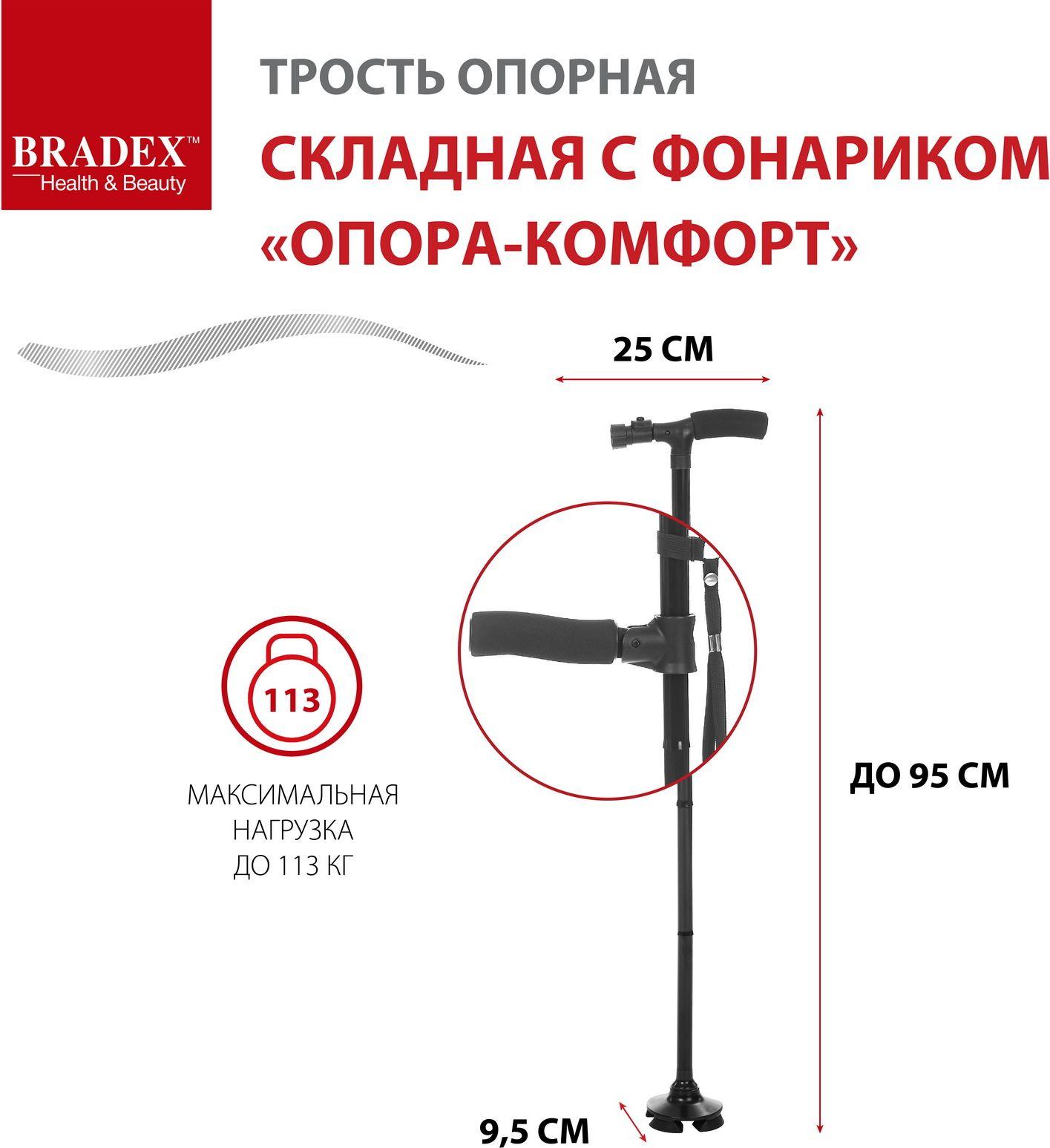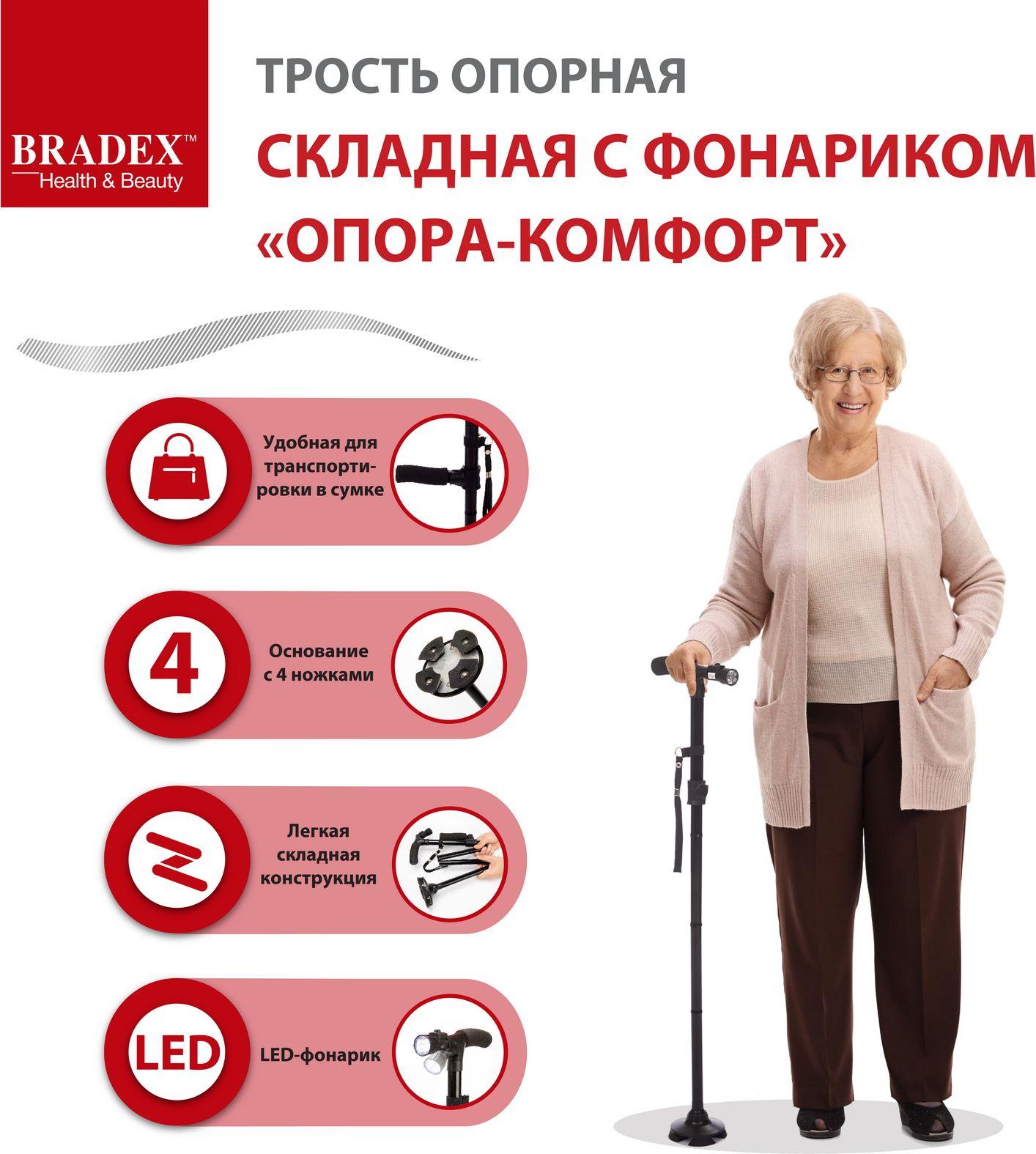 дополнительной поддержки — теперь вставать без посторонней помощи легко! Опорная трость универсальна: регулируется по росту в 5 режимах. Максимальная нагрузка — 113 кг.