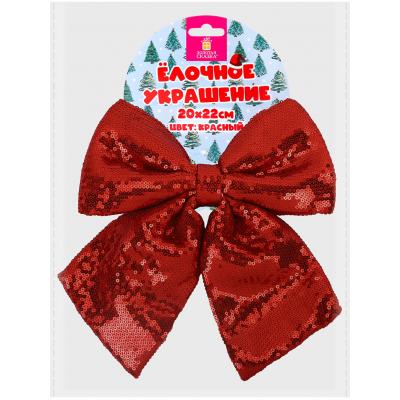 Украшение ёлочное 20х22 см, "Бант с пайетками", полиэстер, красный, ЗОЛОТАЯ СКАЗКА, 592480