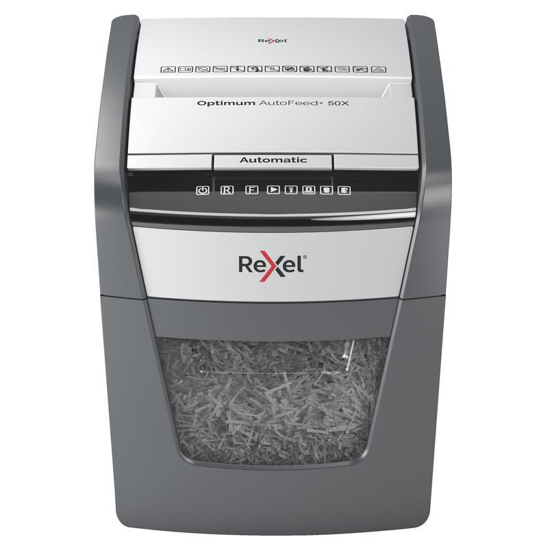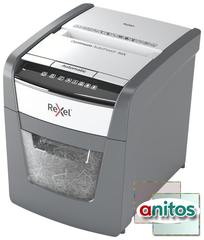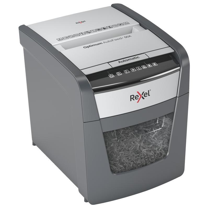 Уничтожитель документов Rexel Optimum AutoFeed 50X с уровнем секретности P-4 и с поперечным типом резки (фрагменты 4x28 мм) автоматически уничтожает до 50 листов формата А4 плотностью 80 г/м2 за один раз. - Шредер с автоподачей идеально подходит для использования дома или в небольшом офисе. Больше нет необходимости стоять рядом и загружать бумагу по несколько листочков или сначала удалять скрепки или скобы, этот шредер с автоподачей сделает все за вас. - Уничтожитель предназначен для нечастого уничтожения большого количества документов. - Уничтожает до 50 листов 80 г/м2 или 55 листов 70 г/м2 при загрузке в специальный отсек в верхней части устройства. - При необходимости можно загрузить до 6 листов в отдельный паз ручной подачи. - Обладает технологией антизамятия. - Корзина с откидной крышкой объемом 20 литров, вмещает до 150 измельченных листов А4. - Окошко для контроля за наполнением мусора. - Индикаторы наполнения корзины, открытой дверцы, перегрева двигателя. - Время непрерывной работы 10 минут с охлаждением мотора шредера с помощью встроенного вентилятора. - Уничтожает кредитные карты. - Ультранизкий уровень шума: 55 дБ.