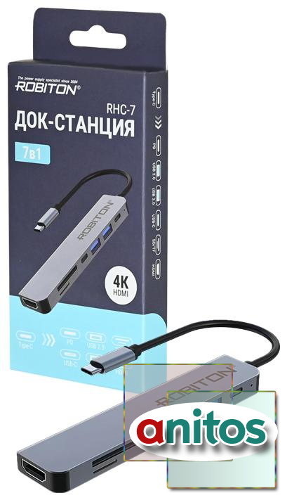 USB-разветвитель ROBITON RHC-7 Док-станция (хаб) PD/HDMI/SD/TF/USB A/USB C BL1