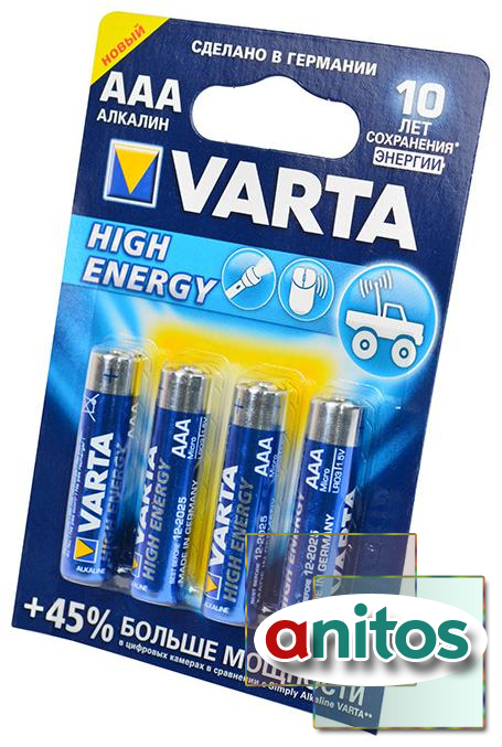 Батарейка мизинчиковая ААА varta high energy 4903 113 414 lr03 bl4