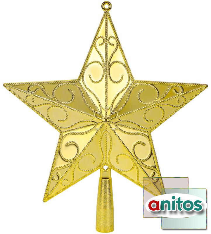Верхушка на ёлку выполнена из пластика золотистого цвета и имеет высоту 23 см. Эта верхушка будет переливаться под светом гирлянд, привлекая внимание и создавая атмосферу волшебства. Она идеально подходит для украшения высотных ёлок и станет ярким завершающим элементом новогоднего декора как в помещении, так и на улице. Простая, но эффектная, верхушка придаст вашей ёлке нарядный и торжественный вид, наполняя пространство радостью и праздником. Материал пластик. Цвет золотистый. Размер 235 см.