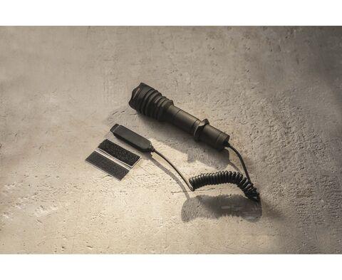 Выносная кнопка разработана для кратковременного (только при нажатии и удержании) включения фонаря, установленного в креплении. Кнопка управления надежно фиксируется на поверхностях различных типов с помощью комплектной текстильной липучки. Выдерживает отдачу.