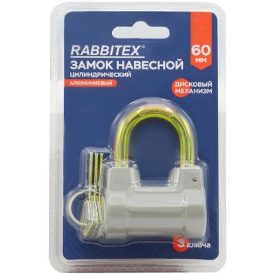 Замок навесной алюминиевый 60 мм цилиндрический "Стандарт", 3 ключа, RABBITEX (РАББИТЕКС), 671307