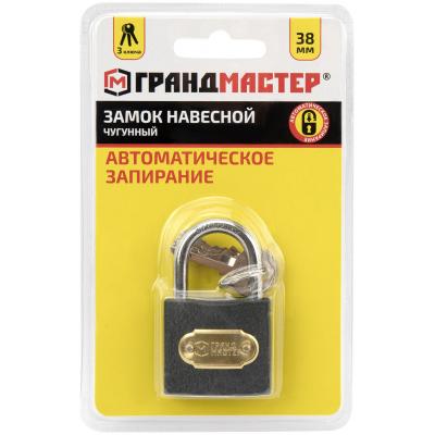 Замок навесной чугунный "Стандарт", ширина 38 мм, английский, 3 ключа, ГРАНДМАСТЕР, 671291