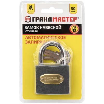 Замок навесной чугунный "Стандарт", ширина 50 мм, английский, 3 ключа, ГРАНДМАСТЕР, 671292