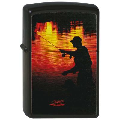 Зажигалка ZIPPO Рыбак, с покрытием Black Matte, латунь/сталь, чёрная, матовая, 36x12x56 мм